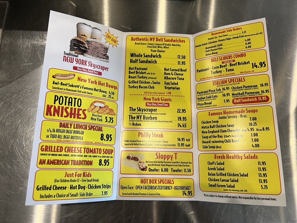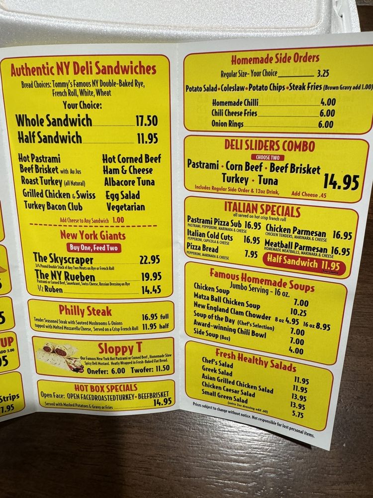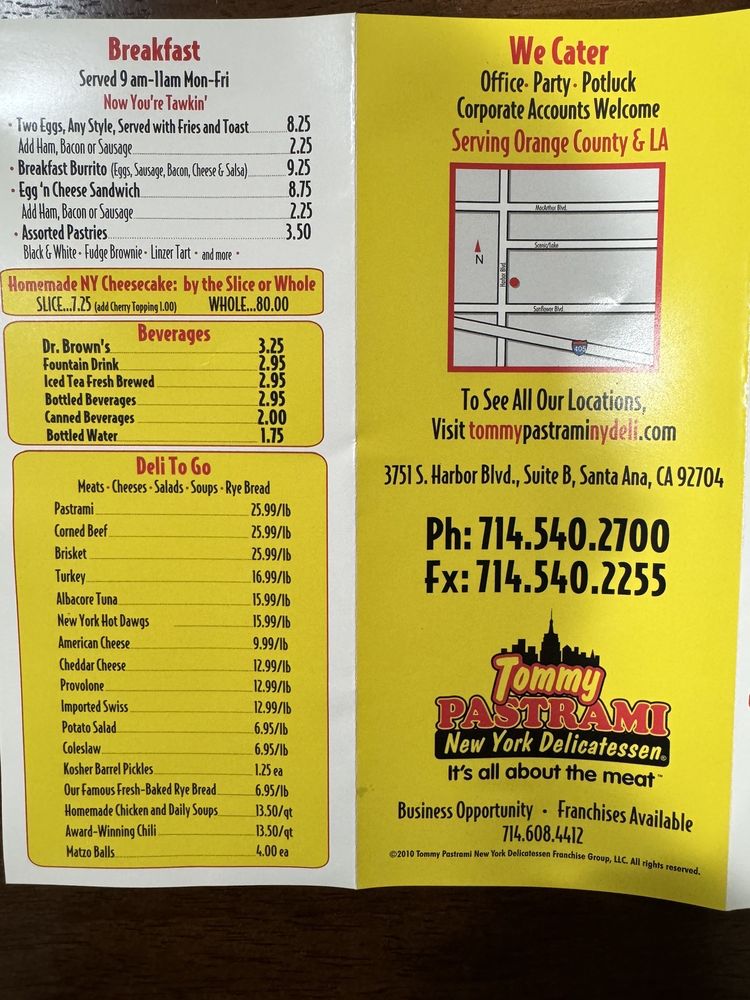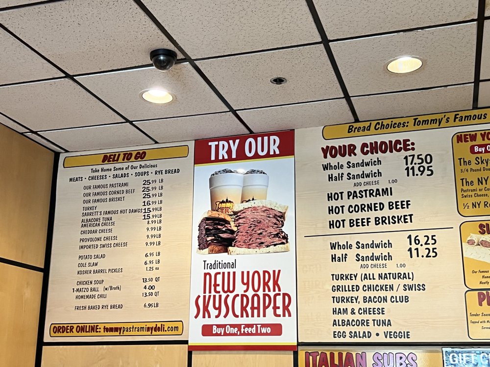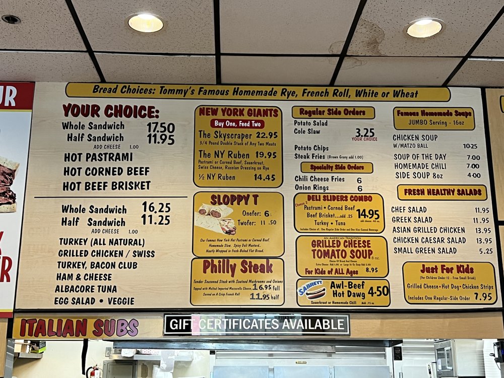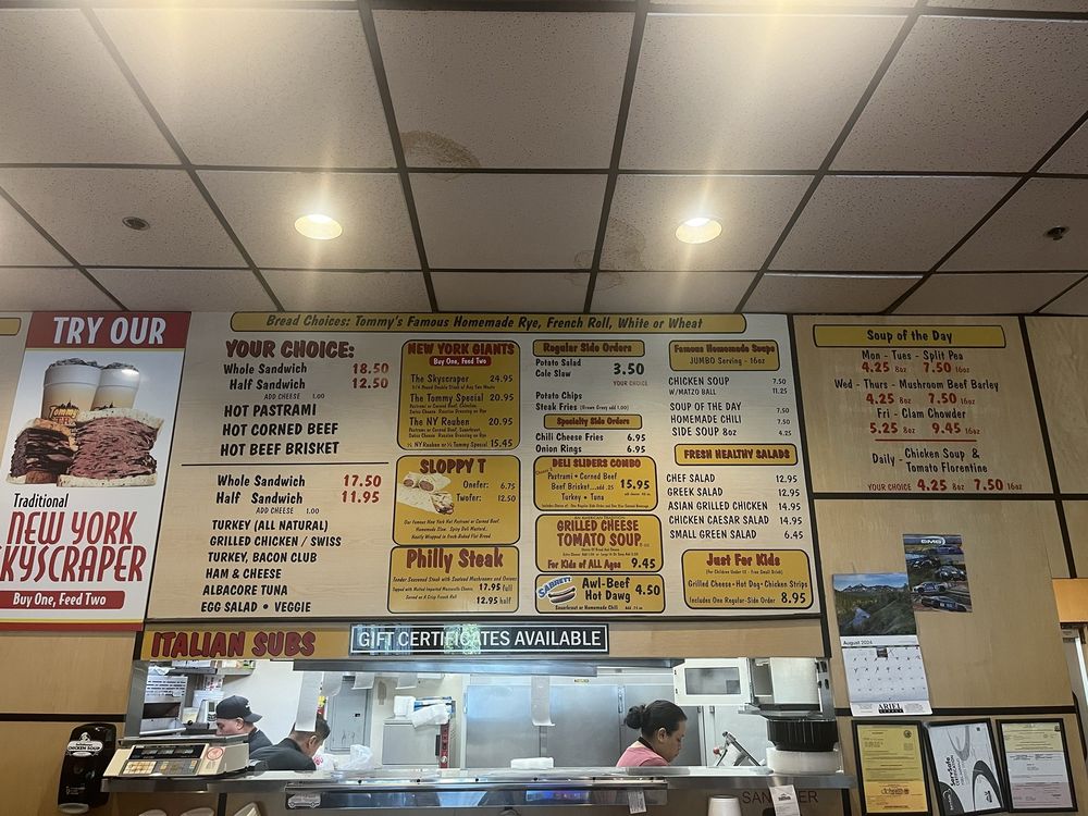 Introducing the menu at Tommy Pastrami New York Delicatessen, located in Santa Ana, CA, brings a taste of authentic NY deli classics to the table. From fresh, healthy salads like the Chef's Salad and Greek Salad to famous homemade soups like Chicken Soup and Matza Ball Chicken Soup, the menu promises hearty and delicious options. The star of the show is their Authentic NY Deli Sandwiches, featuring mouthwatering choices like the Hot Pastrami Sandwich and Roast Turkey Sandwich. Customers rave about the generous portions, flavorful pastrami, and friendly service. With a diverse menu, cozy ambiance, and rave reviews, Tommy Pastrami is a must-visit for any food enthusiast looking for a taste of New York in California.